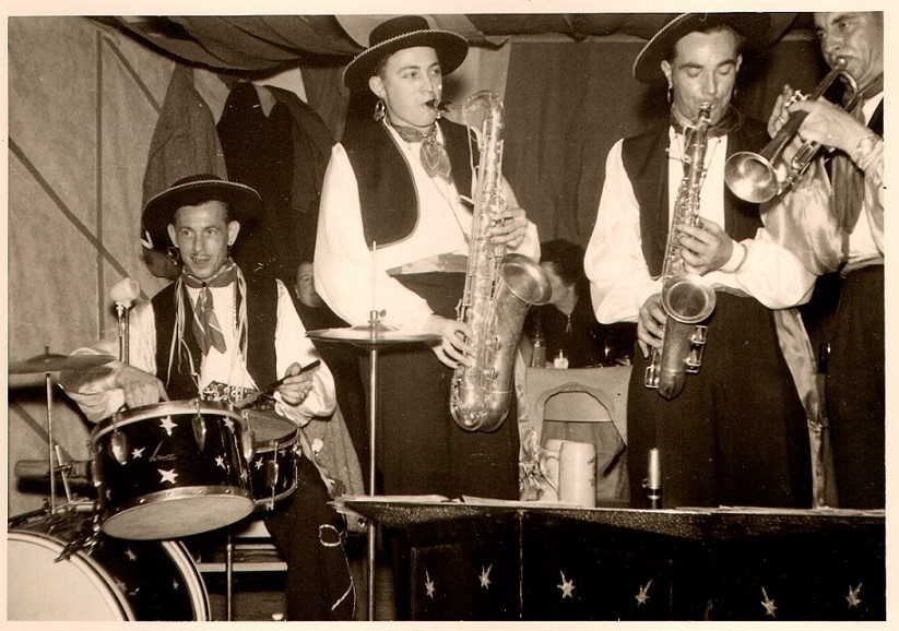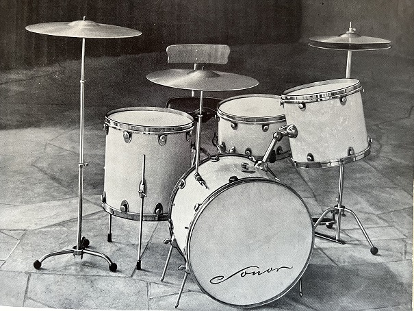 SONOR K121 CLUB- aus Mitte der 50er im Sonor-Katalog abgebildet, mit der Snare D411 "Tonika" und einer einfacheren Hardwareausstattung als das K103.
