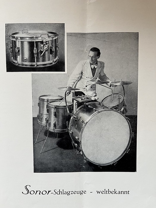 Sonor "Super Ultra" schraubenlose Jazzkombination ( early 50´s) Werbung von Sonor 1951