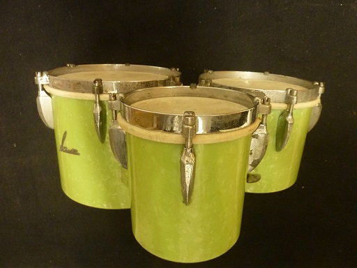 Finish: Perlmutt weiß. Zusätzlich mit Bongos der Grössen 7" und 9" ausgestattet. (aus der Sammlung von Ulrich Bergmann)