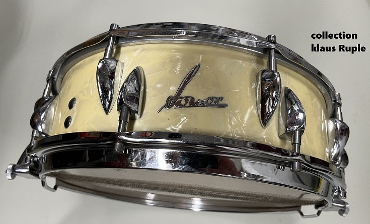 ONOR D 444 VINTAGE SNARE- Bj. 1967. Die Snare mit dem singenden, akzentuierten Sound der Beat Band. Nahtlos gezogener Kessel 14"x5" mit Sicke.